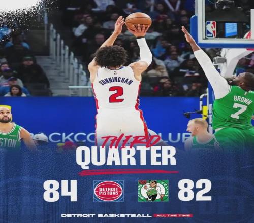 上半场打完,活塞59-51反超8分。坎宁安被限制,托拜厄斯-哈里斯和杰伦-杜伦站出来,两个人上半场合砍24分9篮板。两队三分都挺铁的,凯尔特人上半场三分球22中6,活塞则是18中4。第三节绿军找回准星,单节三分球11中6。